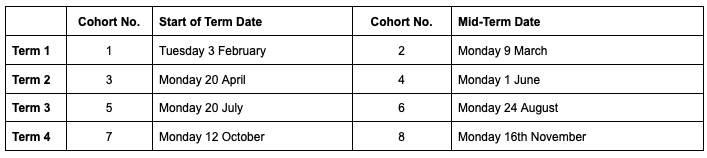 “My child turns 5 on Sunday 25th May but I want them to start school at the start of Term 3. Their start date will be with Cohort 5 on Monday 20th July.”